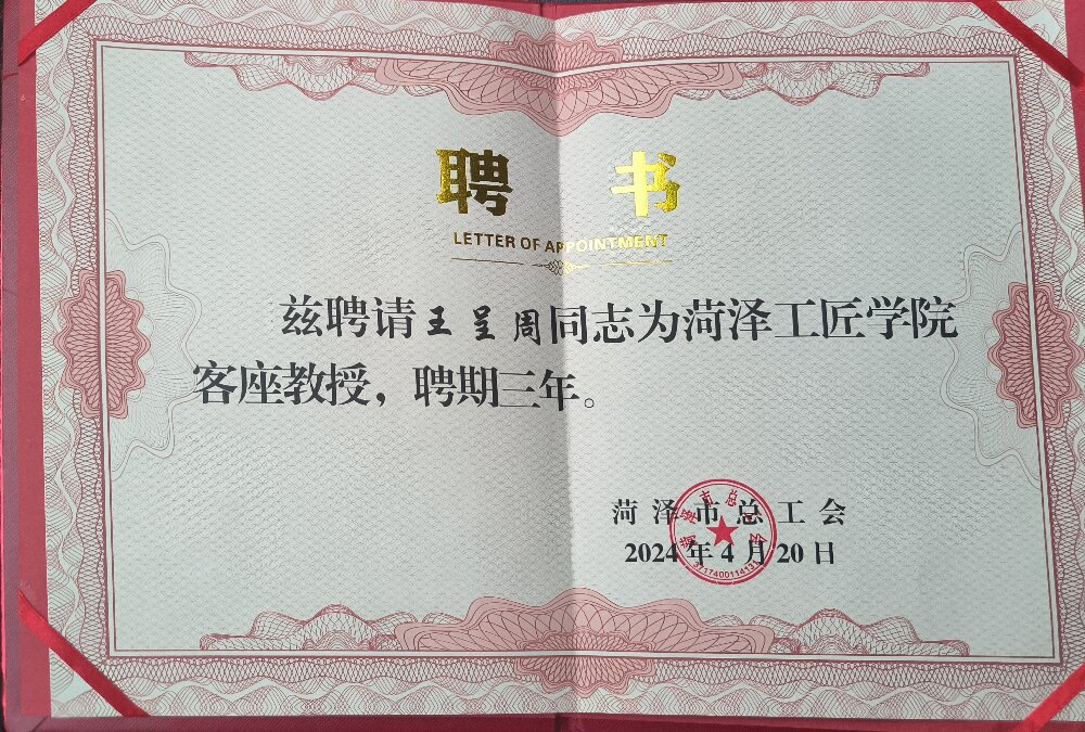 聚祥科技集團(tuán)——王呈周受聘菏澤工匠學(xué)院客座教授