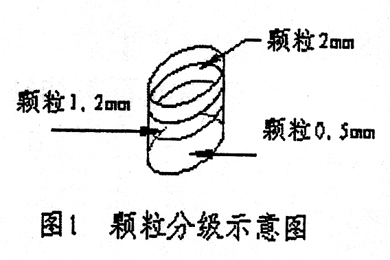 現場使用的分級篩的篩孔分別為2mm、1.2mm和0.5mm三種,篩分時把篩孔尺寸最大的篩合放最上層,篩孔尺寸最小的篩合放最下層,如圖1。其底合專為篩分時裝接細粉之用。